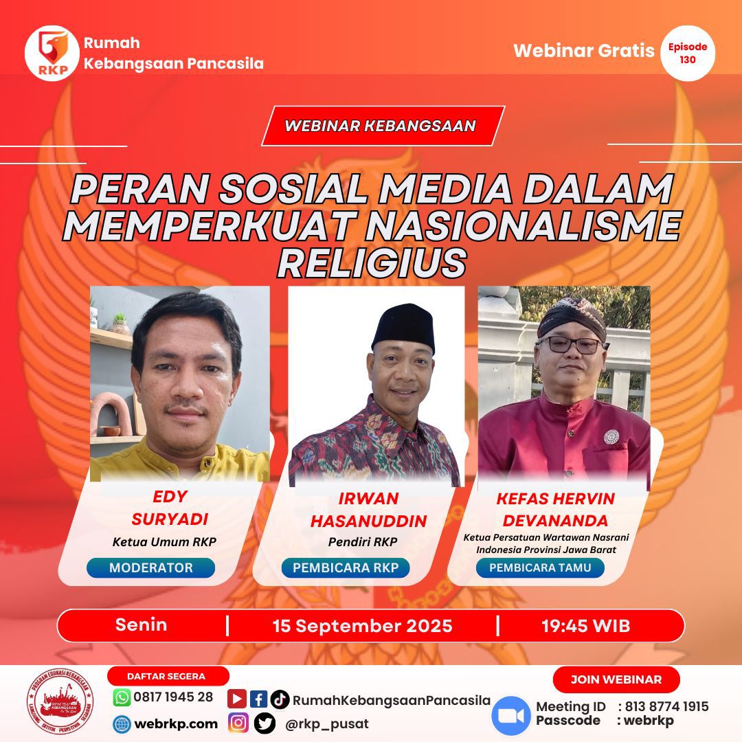 suaralintasnusantara.com – Pada hari Senin, 15 September 2025, pukul 19:45 WIB, Rumah Kebangsaan Pancasila (RKP) mengadakan diskusi menarik dengan tajuk “Peran Media Sosial dalam Memperkuat Nasionalisme Religius” sebagai episode ke-130 dari seri webinar kebangsaan mereka. Diskusi yang dihadiri oleh 150 peserta dari seluruh Indonesia ini menunjukkan tingginya minat dan kesadaran masyarakat akan pentingnya nasionalisme religius di era digital.